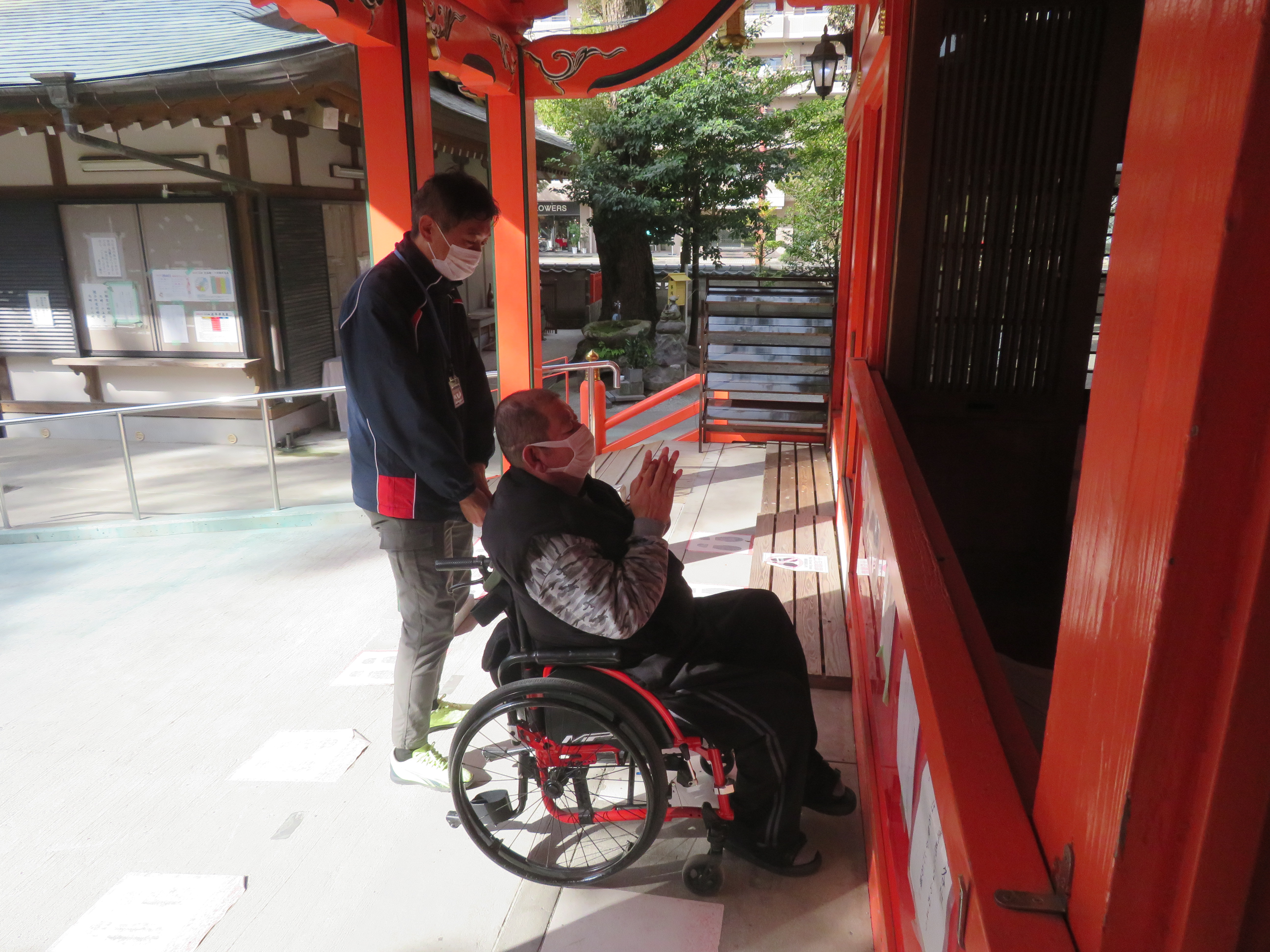 利用者のみなさんは、1年を振り返りながら感謝の気持ちを伝えたり、来年の健康や幸せを願ったりと思い思いに参拝されていました。