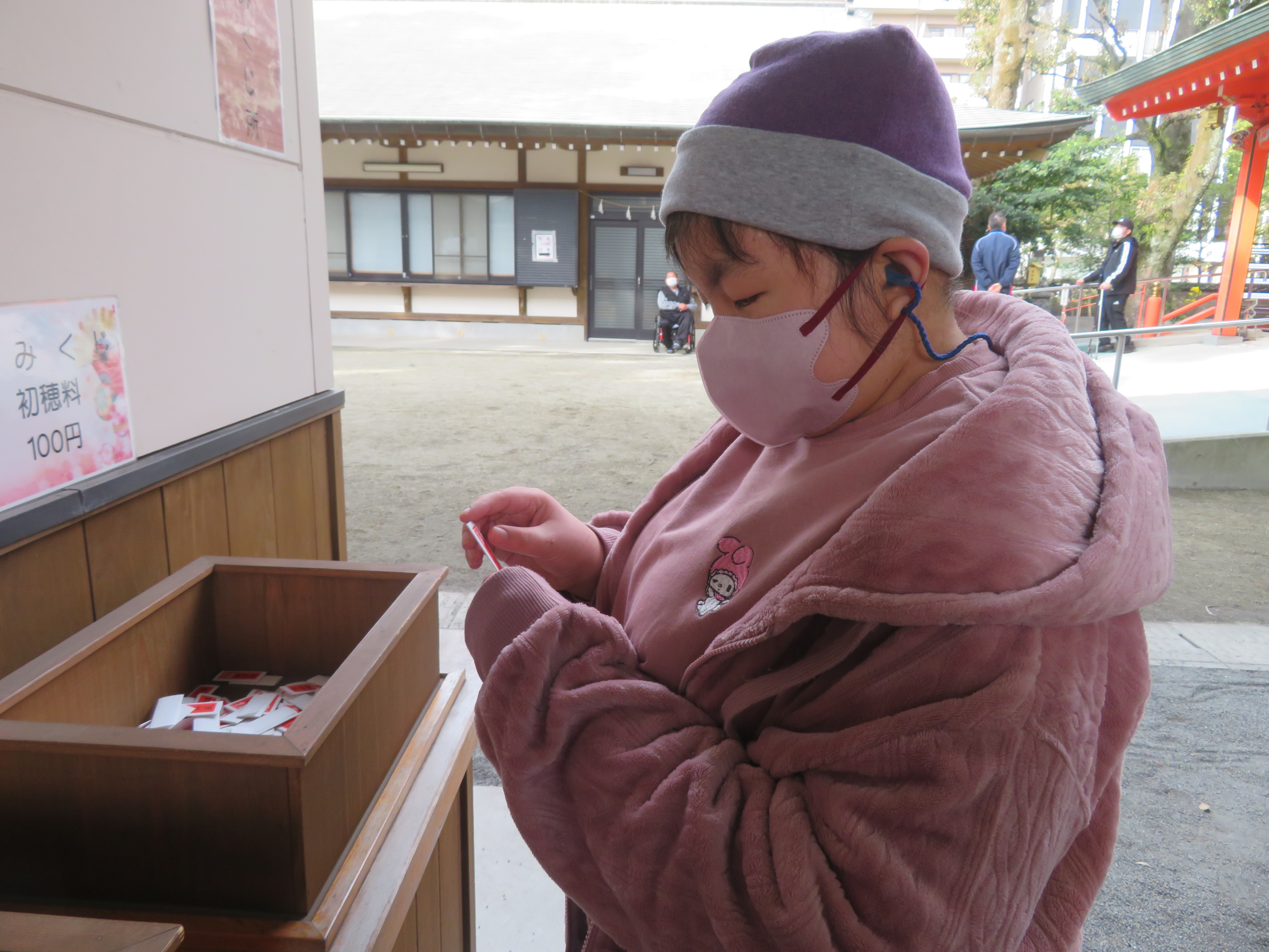 参拝後は、おみくじを引いたりお守りを選んだりと利用者のみなさんの穏やかな笑顔が印象的でした。