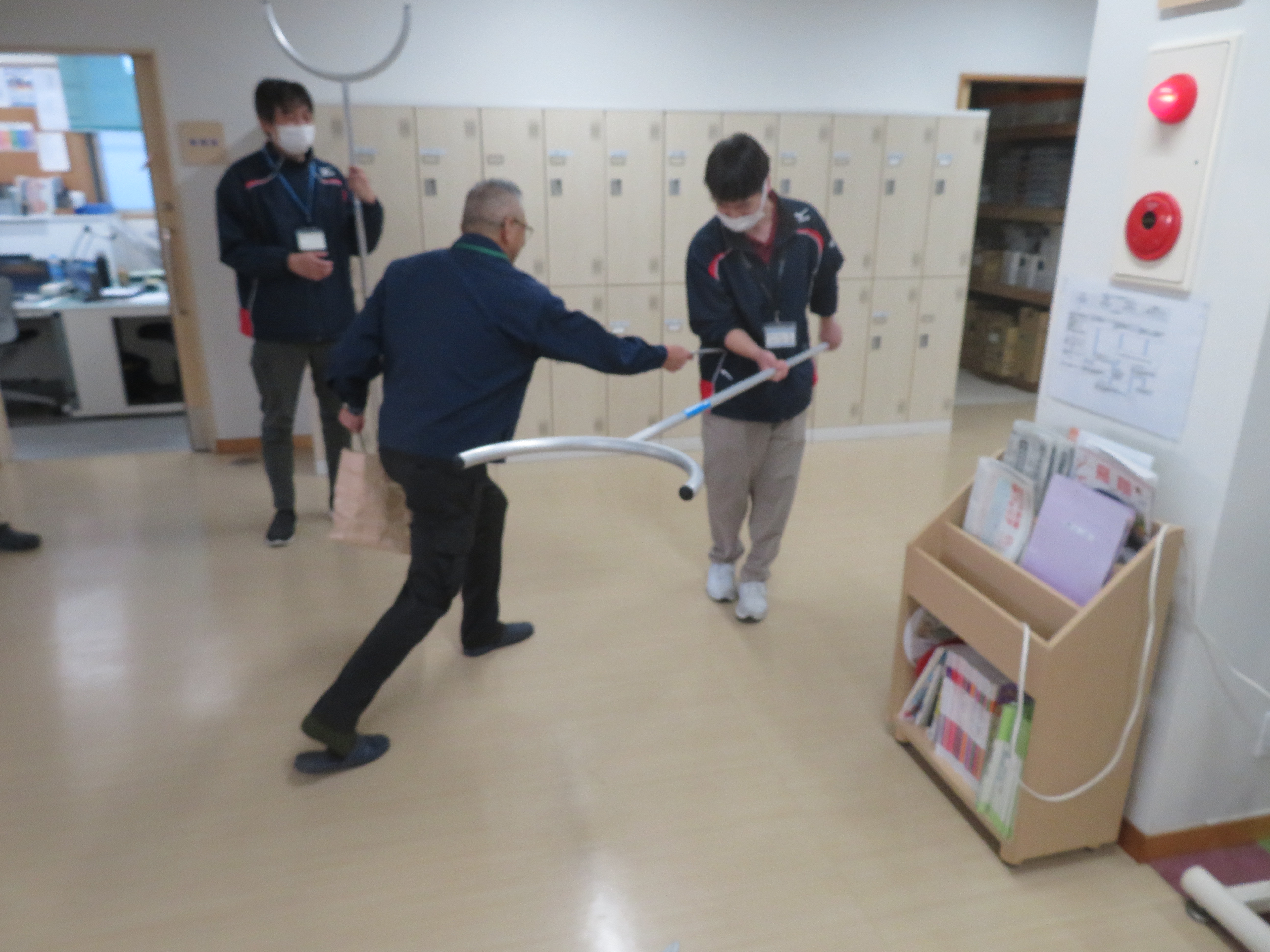 持ち方を誤ったり、油断していると反対に相手に利用されてしまう危険性を学び、職員一同